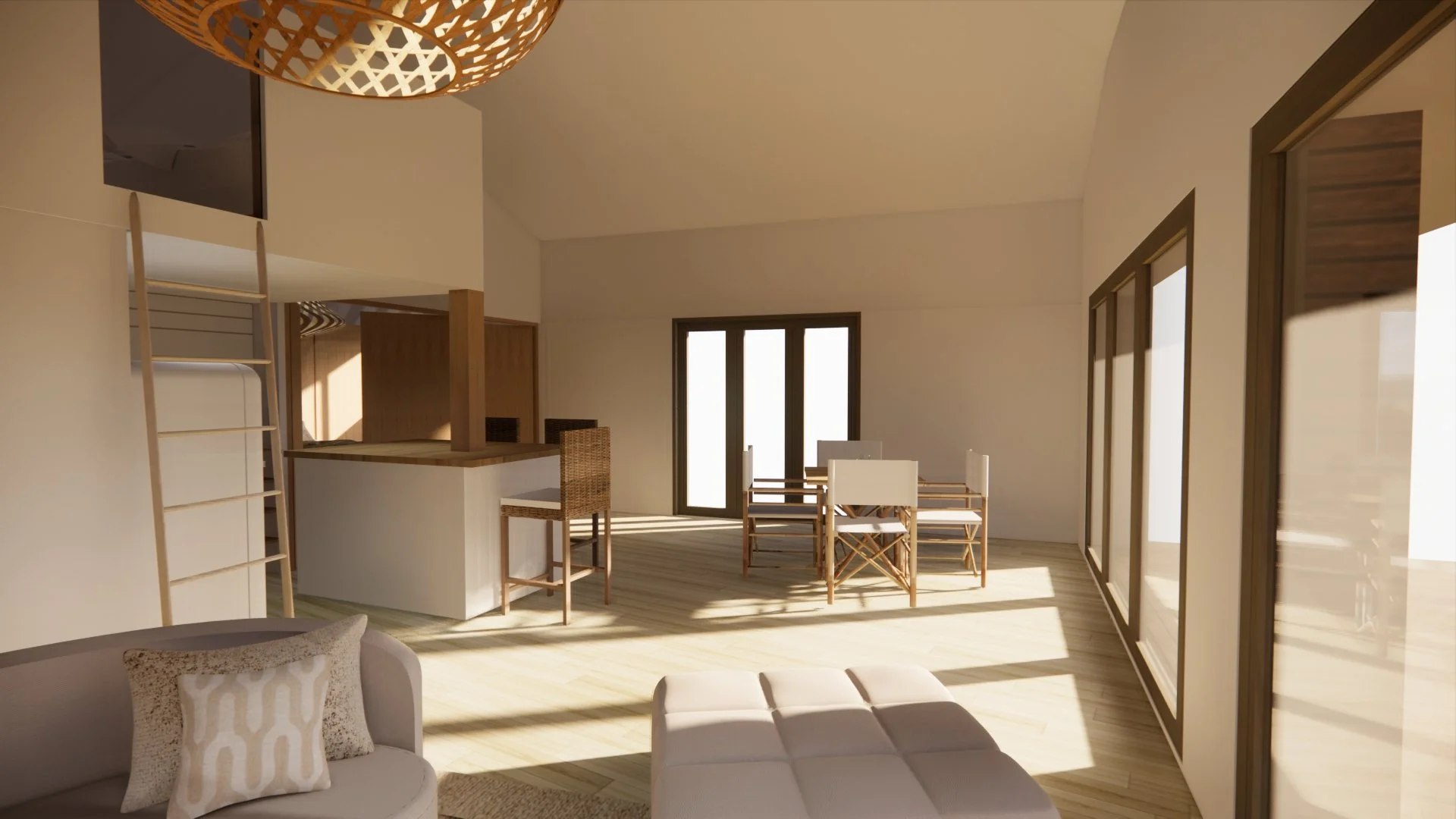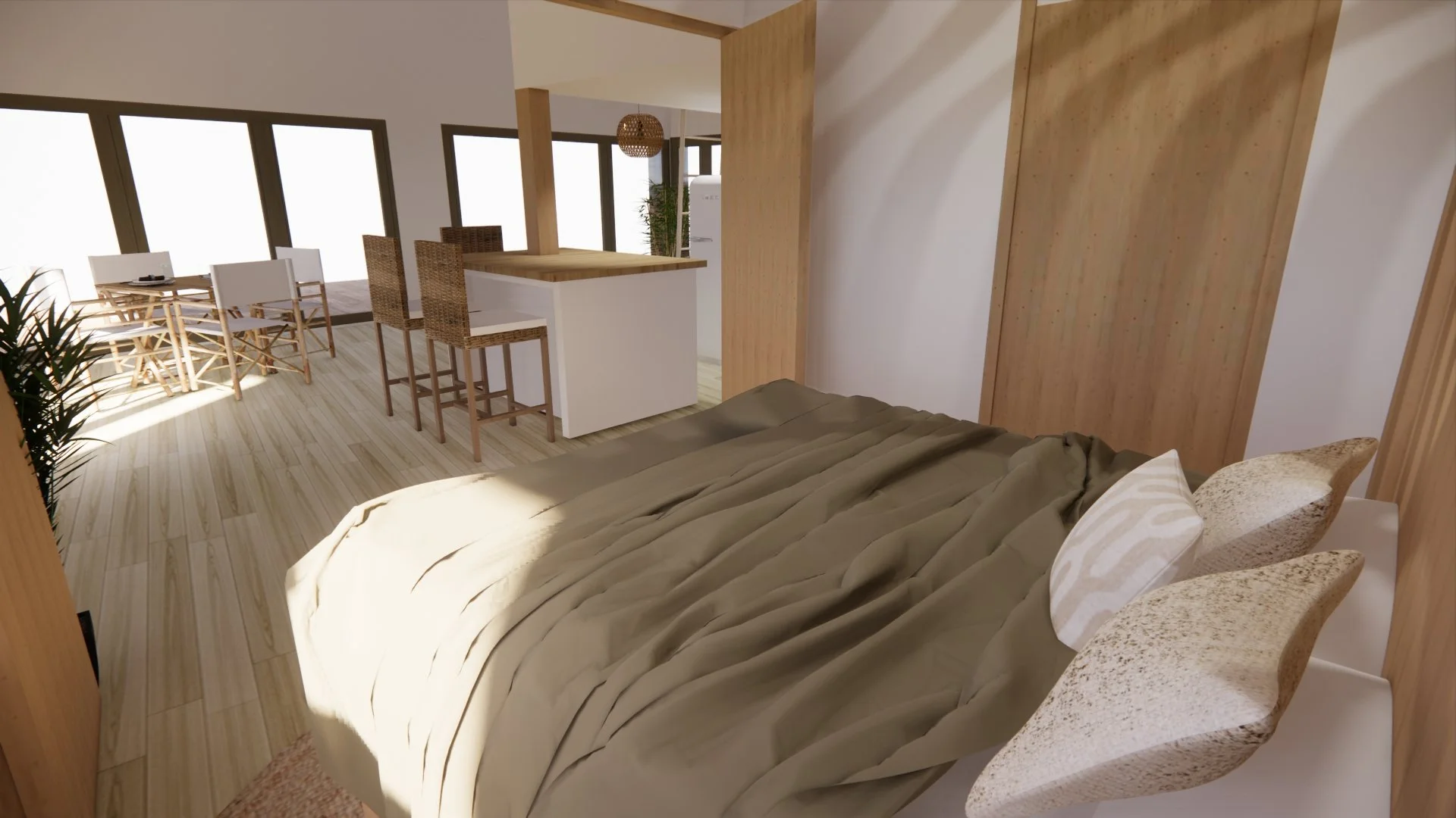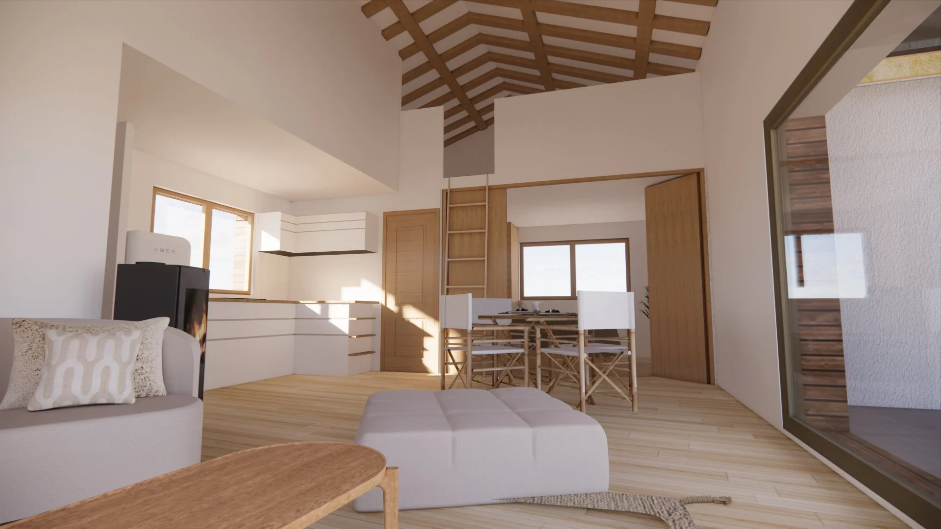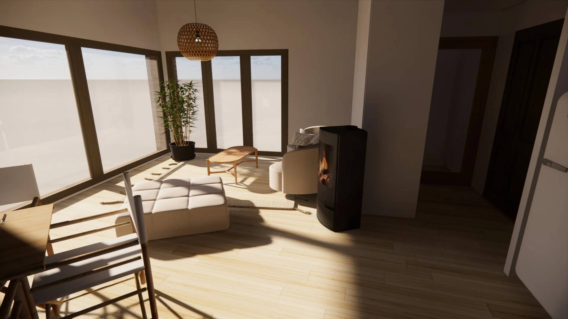 La demande des clients était de construire une maison passive d’environ 50m2 sur un terrain arboré, comprenant une chambre, un espace de vie modulable, ainsi qu’une mezzanine.