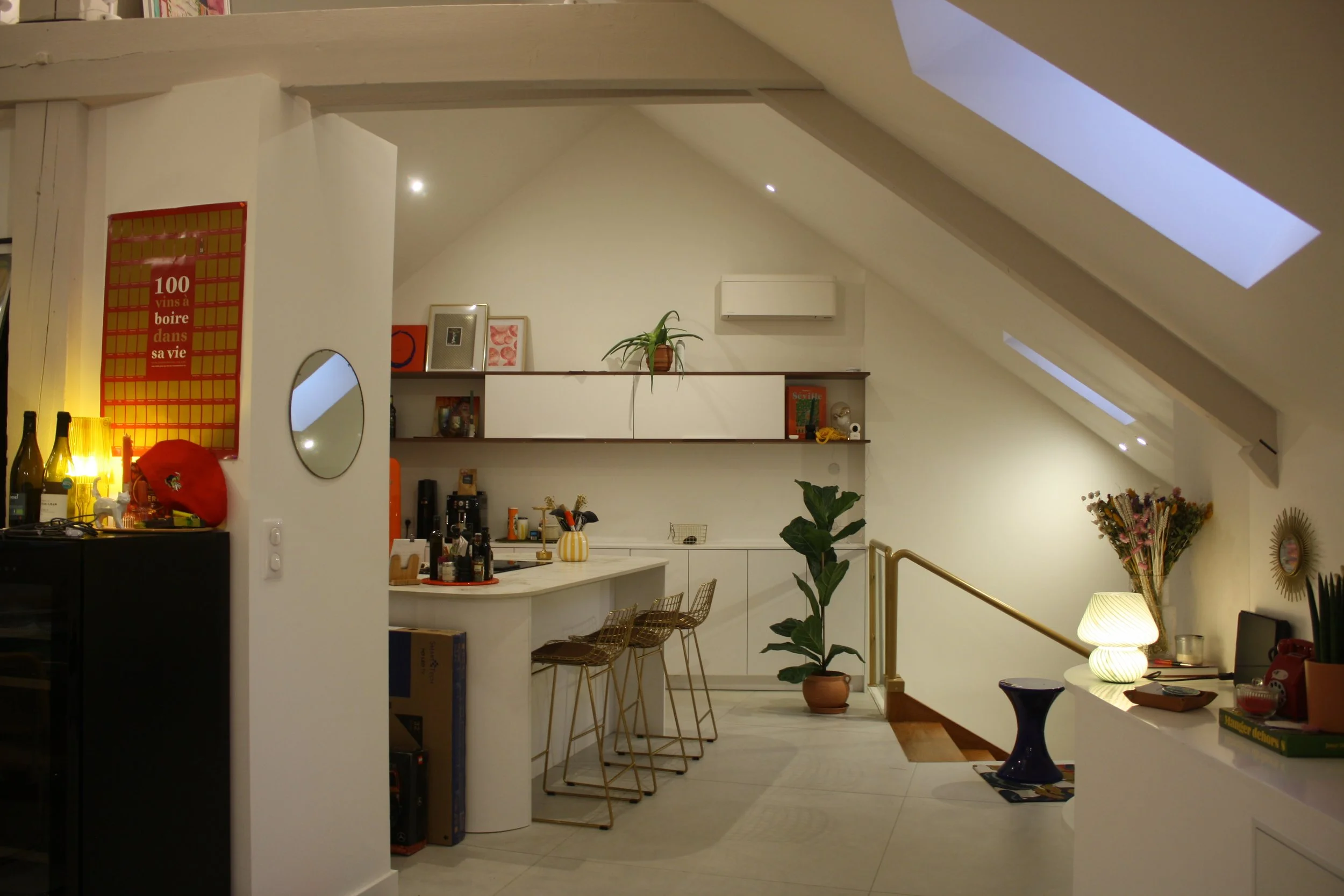 L’appartement étant sous les toits d’un immeuble en centre-ville, le confort d’été était primordial.