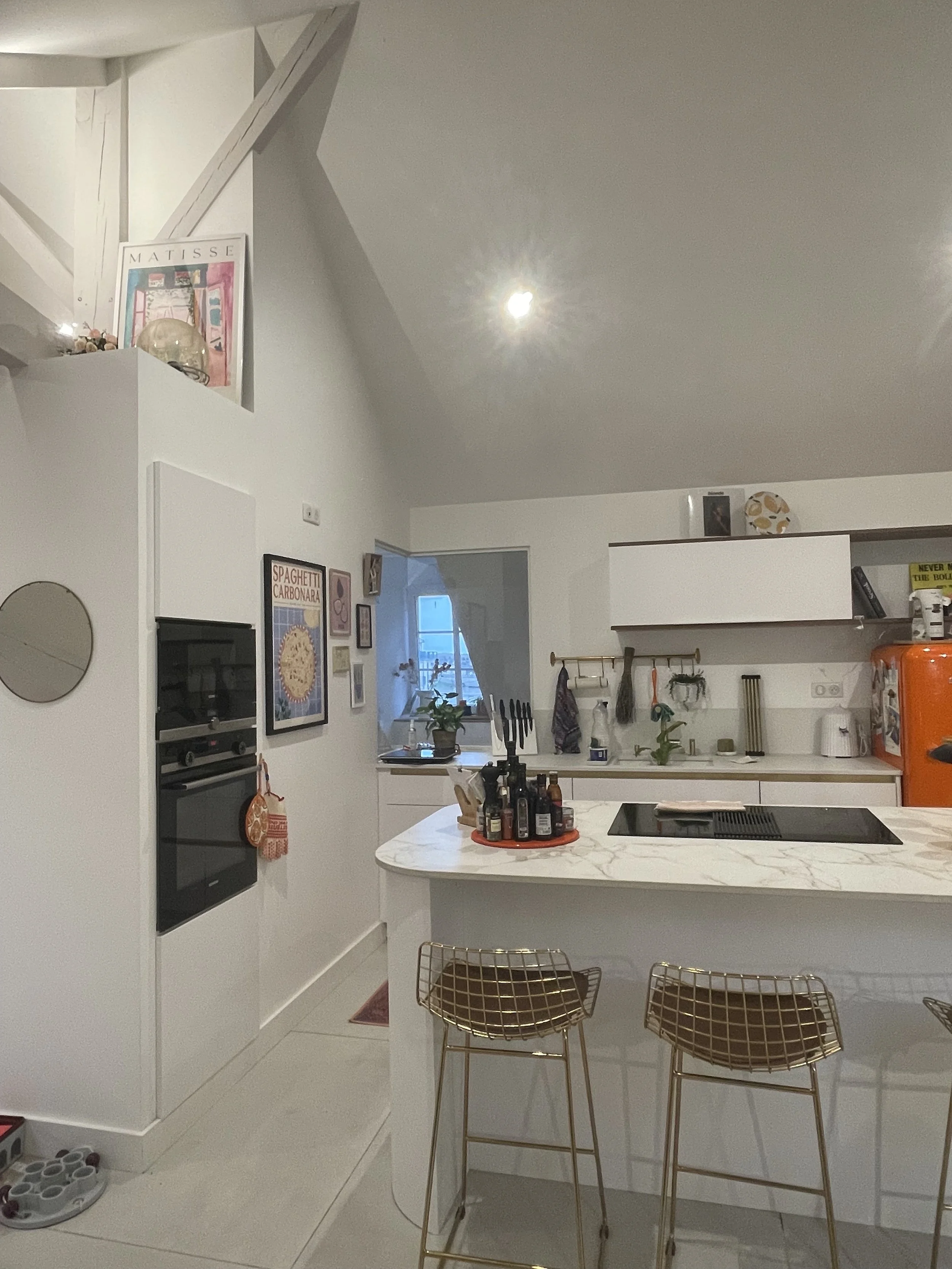 L’ensemble des espaces ont été réorganisés. La cuisine est devenue une petite alcôve avec une verrière pour avoir la lumière et la vue sur la Loire. Une arrière-cuisine et des “WC invités” ont également été créés. Pour la partie nuit, le maitre d’ouvrage à fait le choix de supprimer une salle de bain et de n’en faire qu’une seule accessible depuis les 2 chambres.